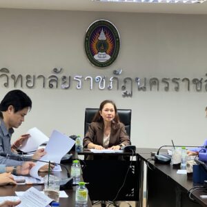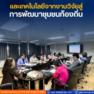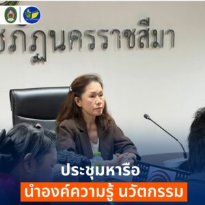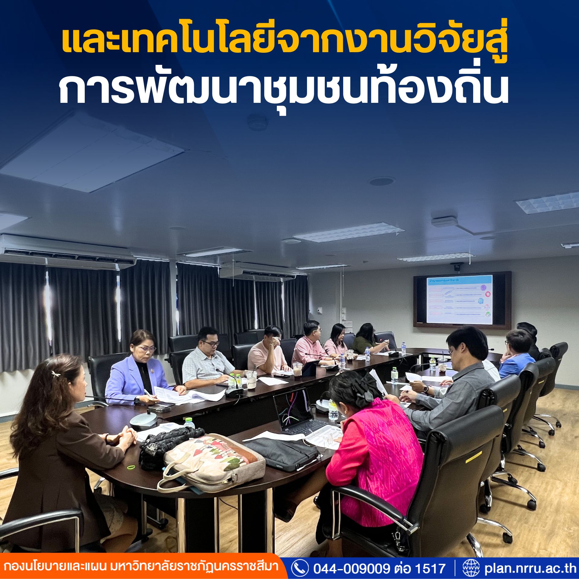 วันอังคารที่ 19 พฤศจิกายน พ.ศ. 2567 เวลา 09.00 น. ณ ห้องประชุมลำตะคอง อาคาร 9 ชั้น 4 มหาวิทยาลัยราชภัฏนครราชสีมา นำโดย ผู้ช่วยศาสตราจารย์สุธีรา เข็มทอง รองอธิการบดีฝ่ายแผน งบประมาณ และพัฒนาคุณภาพ พร้อมด้วยผู้ช่วยศาสตราจารย์ ดร.กนกพร ฉิมพลี ผู้ช่วยอธิการบดีฝ่ายพัฒนาท้องถิ่น ร่วมกับผู้บริหารและบุคลากรของสถาบันวิจัยและพัฒนา คณะวิทยาศาสตร์และเทคโนโลยี และคณะเทคโนโลยีอุตสาหกรรม จัดประชุมหารือแนวทางการบูรณาการความร่วมมือในการนำองค์ความรู้ เทคโนโลยี และนวัตกรรม จากผลงานวิจัยไปสู่การบริการวิชาการเพื่อพัฒนาชุมชนท้องถิ่น เชื่อมโยงยุทธศาสตร์มหาวิทยาลัยราชภัฏให้บรรลุเป้าหมาย รวมถึงสร้างความเป็นเลิศตามจุดเน้นของกลุ่มสถาบันพัฒนาชุมชนเชิงพื้นที่หรือชุมชนอื่น (Area base & Community) โดยที่ประชุมได้รับทราบข้อมูลและแลกเปลี่ยนเรียนรู้แนวทางขับเคลื่อนการดำเนินงานร่วมกัน ซึ่งจะได้ดำเนินการขั้นต่อไป