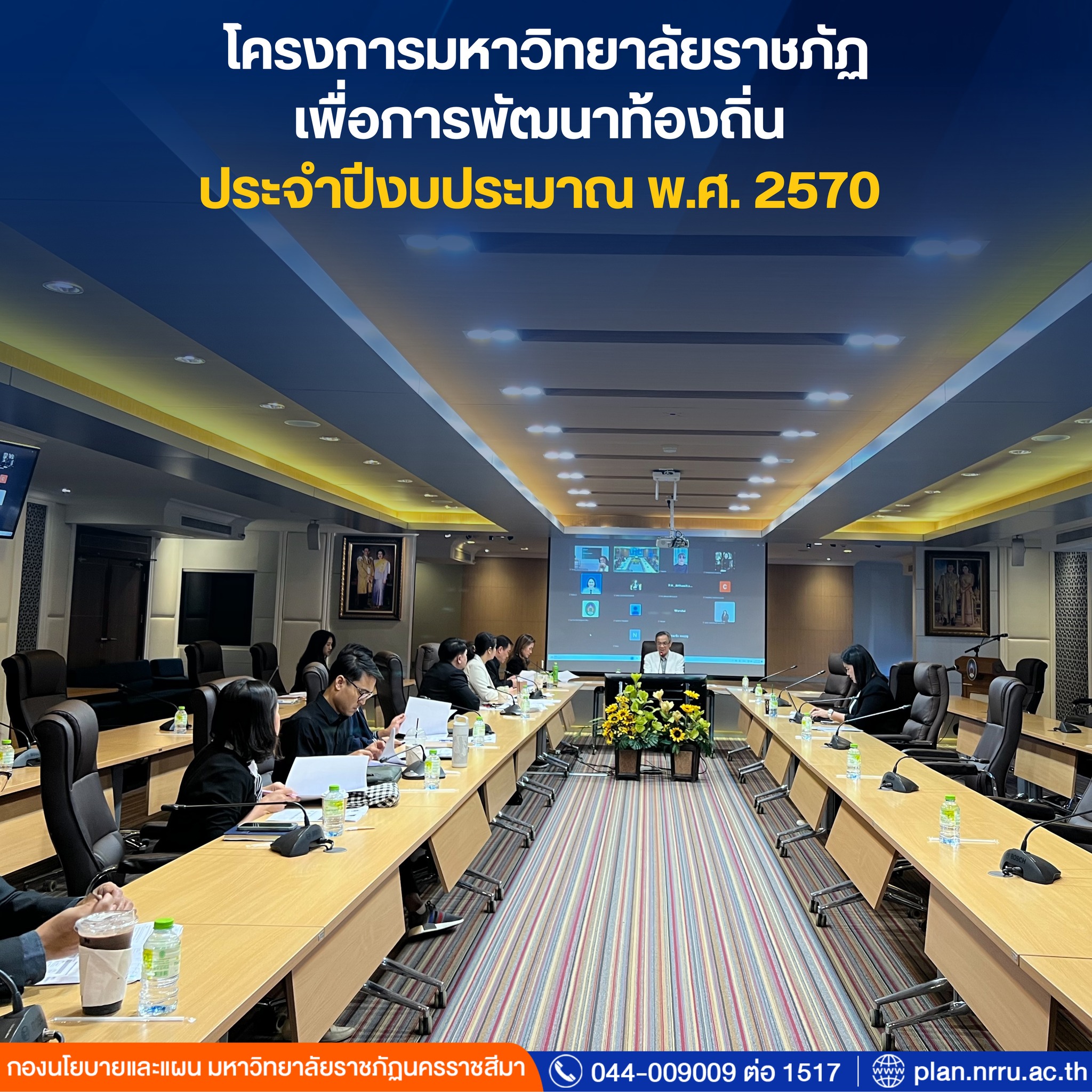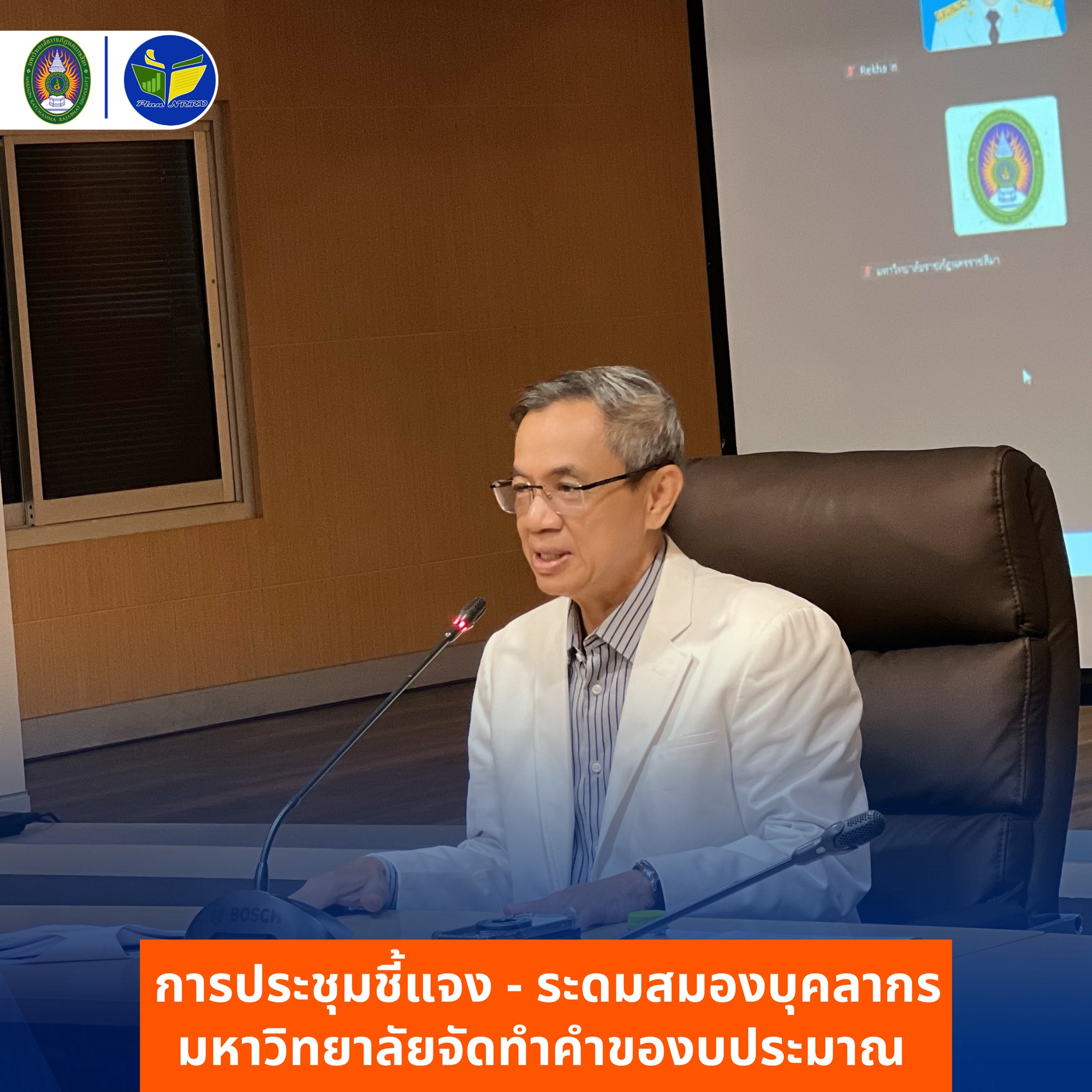 วันพฤหัสบดีที่ 4 ธันวาคม พ.ศ. 2568 กองนโยบายและแผนจัดประชุมชี้แจง และระดมสมองบุคลากร สายวิชาการ และสายสนับสนุน ในการจัดทำคำของบประมาณโครงการมหาวิทยาลัยราชภัฏเพื่อการพัฒนาท้องถิ่น ประจำปีงบประมาณ พ.ศ. 2570 โดยได้รับเกียรติจาก รศ.ดร.อดิศร เนาวนนท์ อธิการบดี และประธาน ทปอ.มหาวิทยาลัยราชภัฏ มอบนโยบายและแนวทางการจัดทำโครงการ พร้อมด้วย ผศ.สุธีรา เข็มทอง รองอธิการบดีฝ่ายแผน งบประมาณและพัฒนาคุณภาพ และ รศ.ดร.ชคัตตรัย รยะสวัสดิ์ รองอธิการบดีฝ่ายบริการวิชาการ ชี้แจงรายละเอียด ทั้งนี้ ได้รับความร่วมมือจากผู้แทนอาจารย์และบุคลากรเป็นอย่างดี จึงขอขอบคุณมา ณ โอกาสนี้